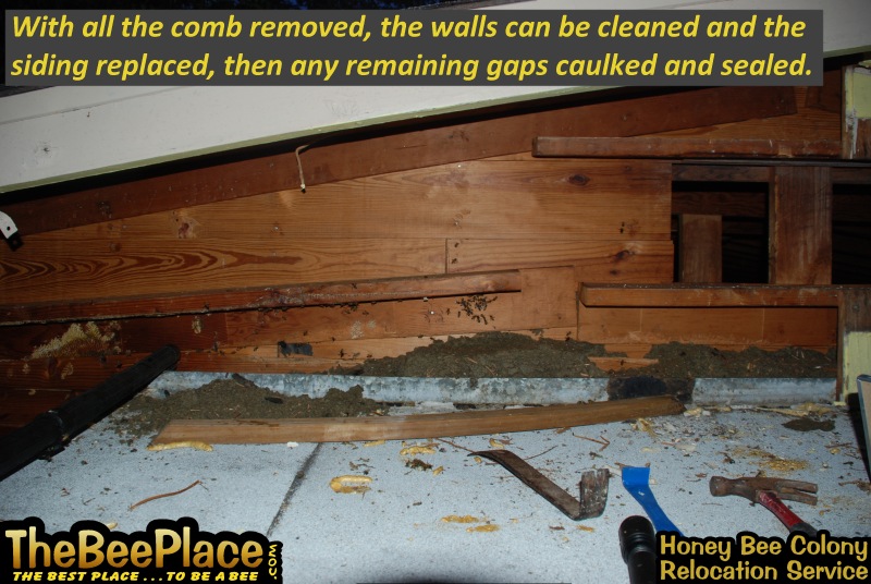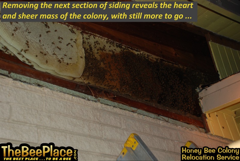 that moved into a client's wall over their front porch. The client was unaware of the size, but wanted the bees removed and