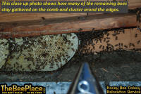 Once the bulk of the bees are contained, the box is closed and the entire colony is relocated to our safe and eco friendly bee yard where they will join other hives and do what bees like to do, collect pollen and raise their young. |
