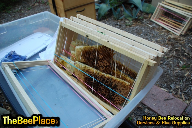 Once the bulk of the bees are contained, the box is closed and the entire colony is relocated to our safe and eco friendly bee yard where they will join other hives and do what bees like to do, collect pollen and raise their young. |
