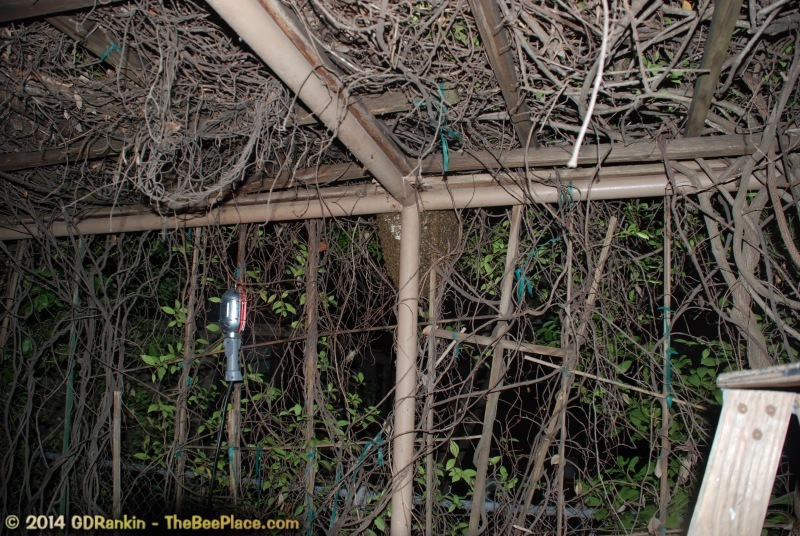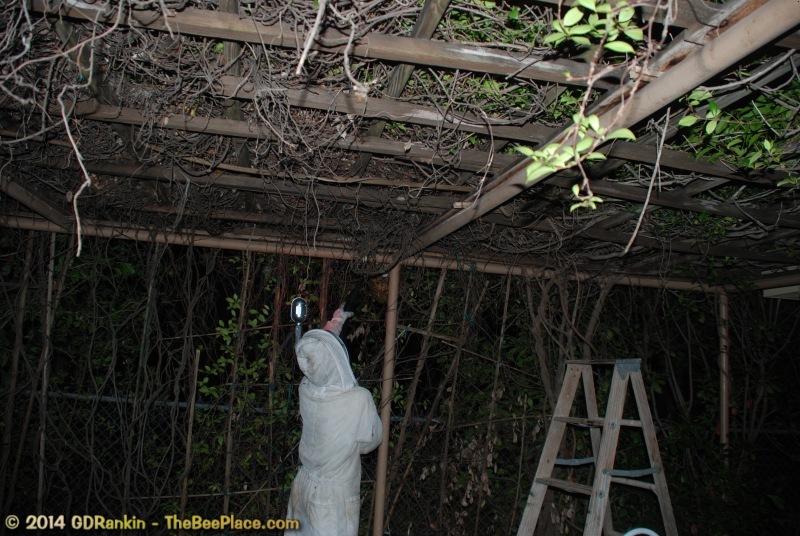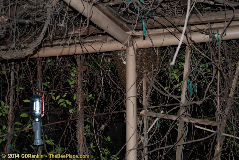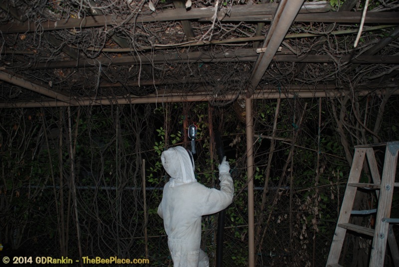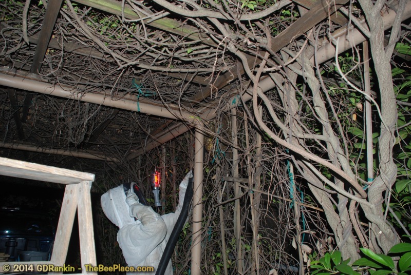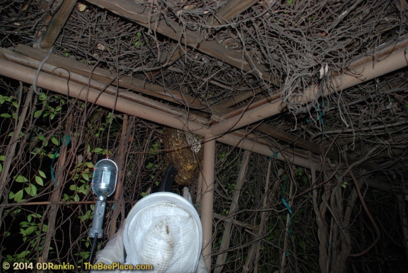 that moved into a trellis in the client's driveway. The client wanted the bees removed and