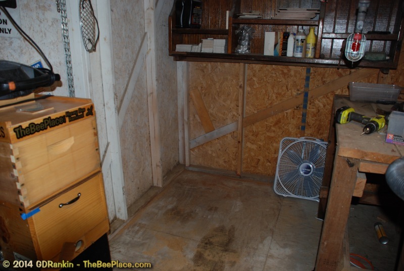 To relocate the bees alive, we carefully removed the comb in sections, including the brood and the honey and place the sections of comb in special frames that fit into a wooden box for transport. Many of the worker bees form clusters around the hive area, in holes and crevices on the inside of the wall. These are vacuumed into the lower section of the BeeVac and held there safely out of harms way. |